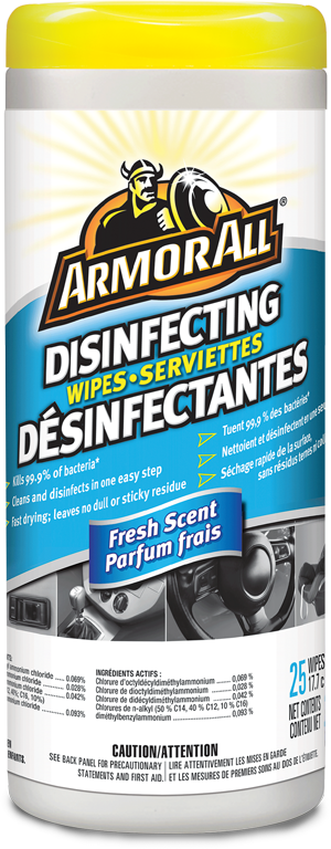 Armor All® Disinfecting Wipes are safe for car surfaces and won’t damage them.